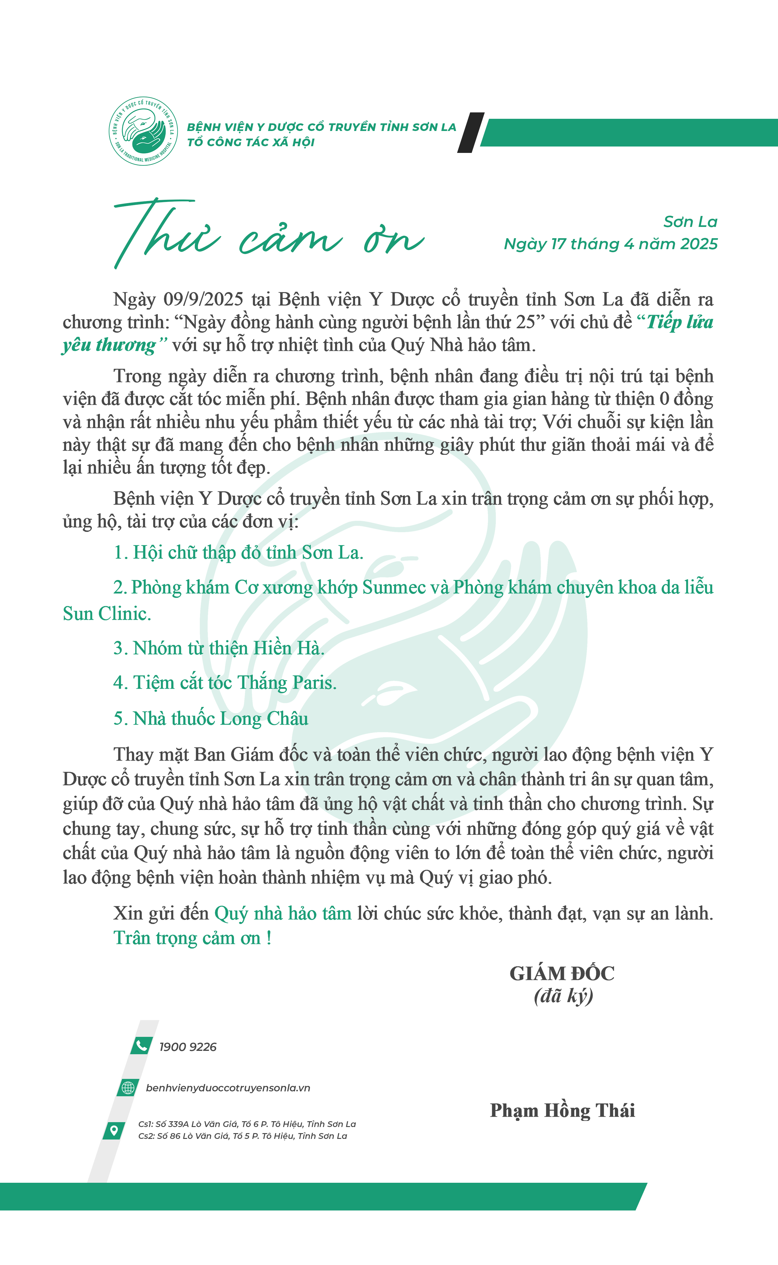 © Bản quyền thuộc Bệnh viện Y Dược cổ truyền Sơn La. Thông tin trích từ trang tin điện tử này yêu cầu ghi rõ từ nguồn www...